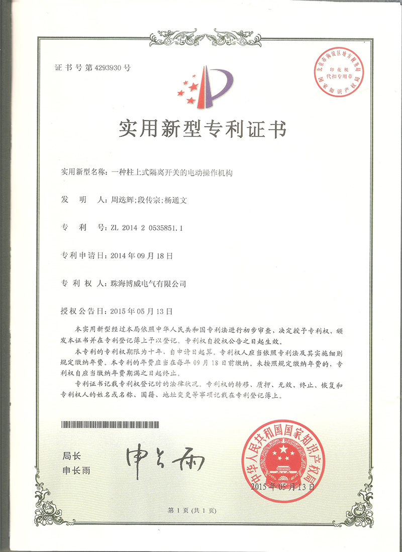 (实用新型)一种柱上式隔离开关的电动操作机构