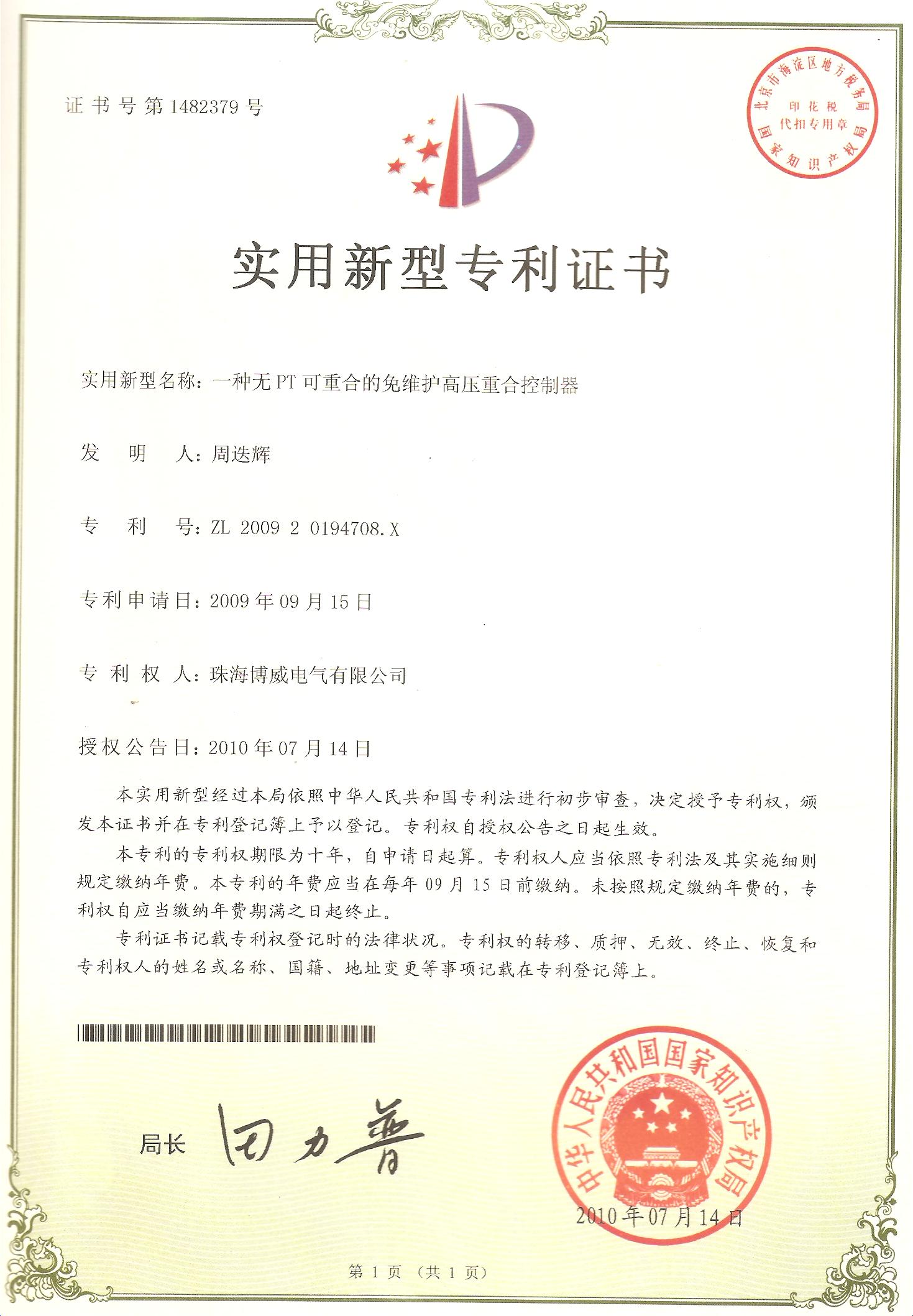 (实用新型)一种无PT可重合的免维护高压重合控制器